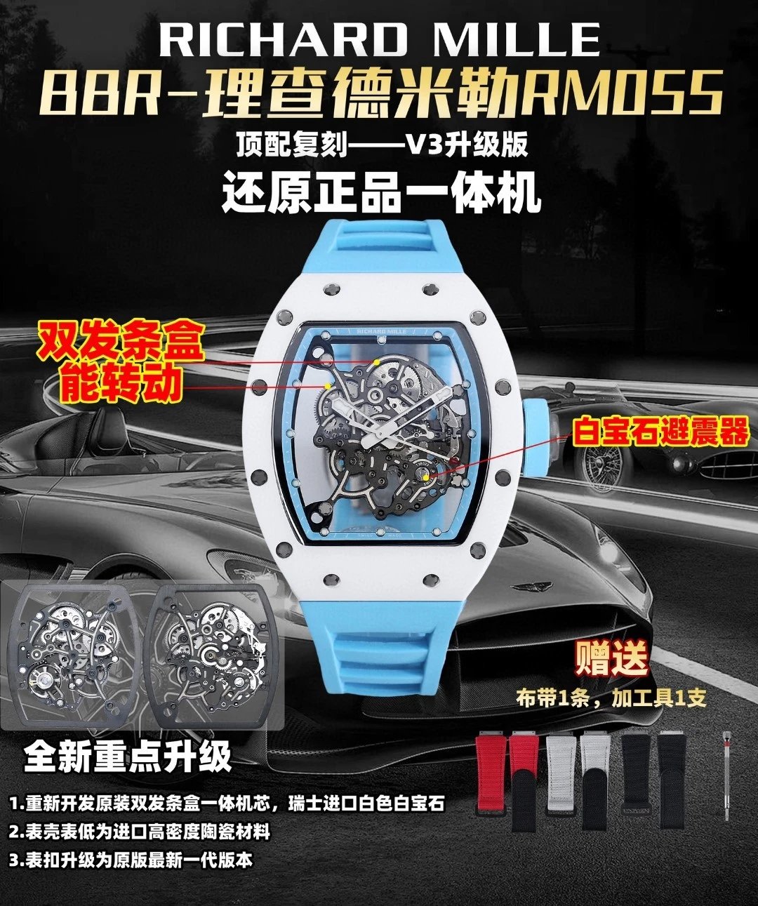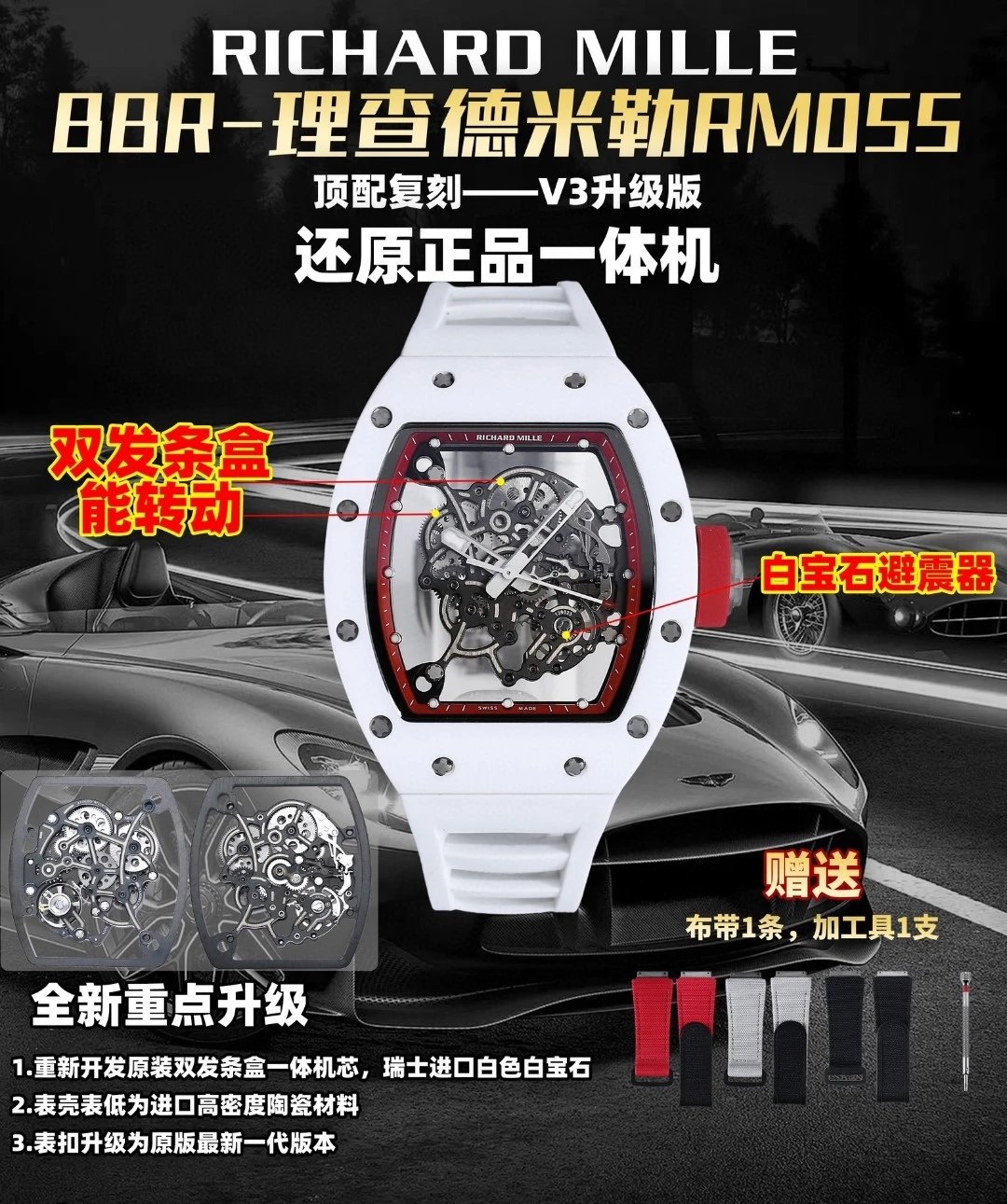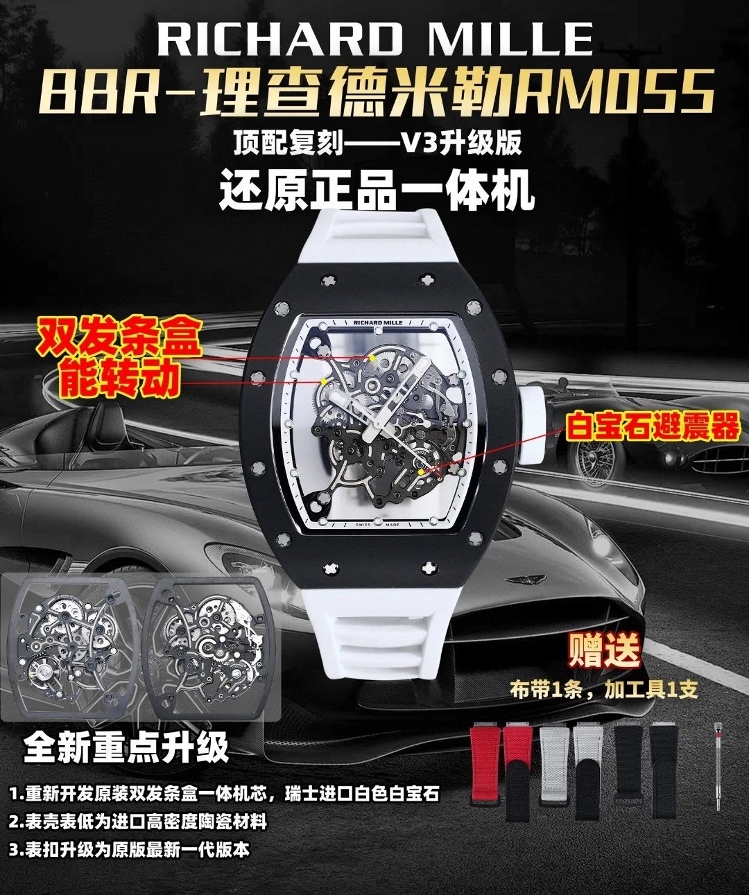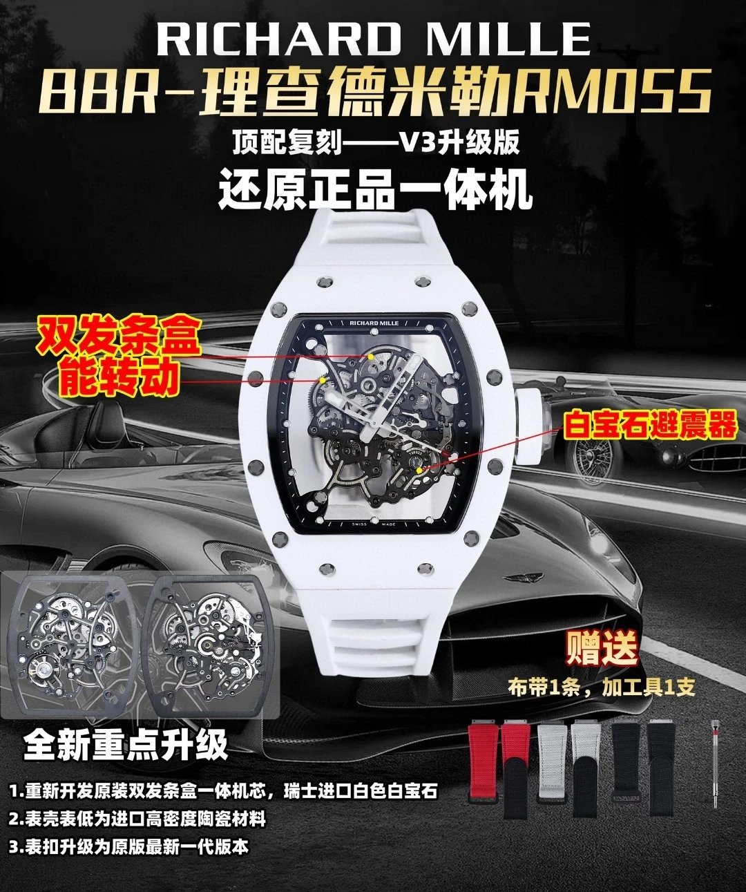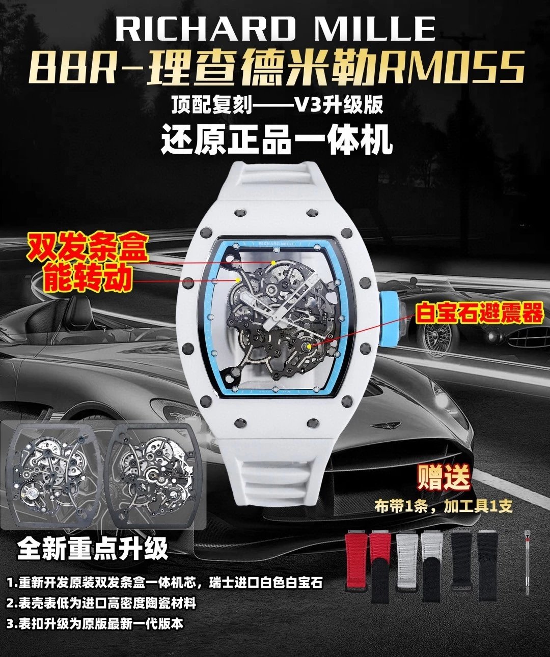 理查德米勒RM-055白陶瓷一體機芯 頂級復刻版本
