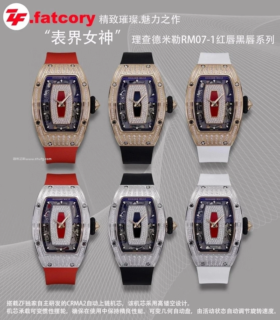 理查德米勒 RM07-01 紅唇系列 鑽石酒桶殼 ZF廠 1:1復刻 45.66mm