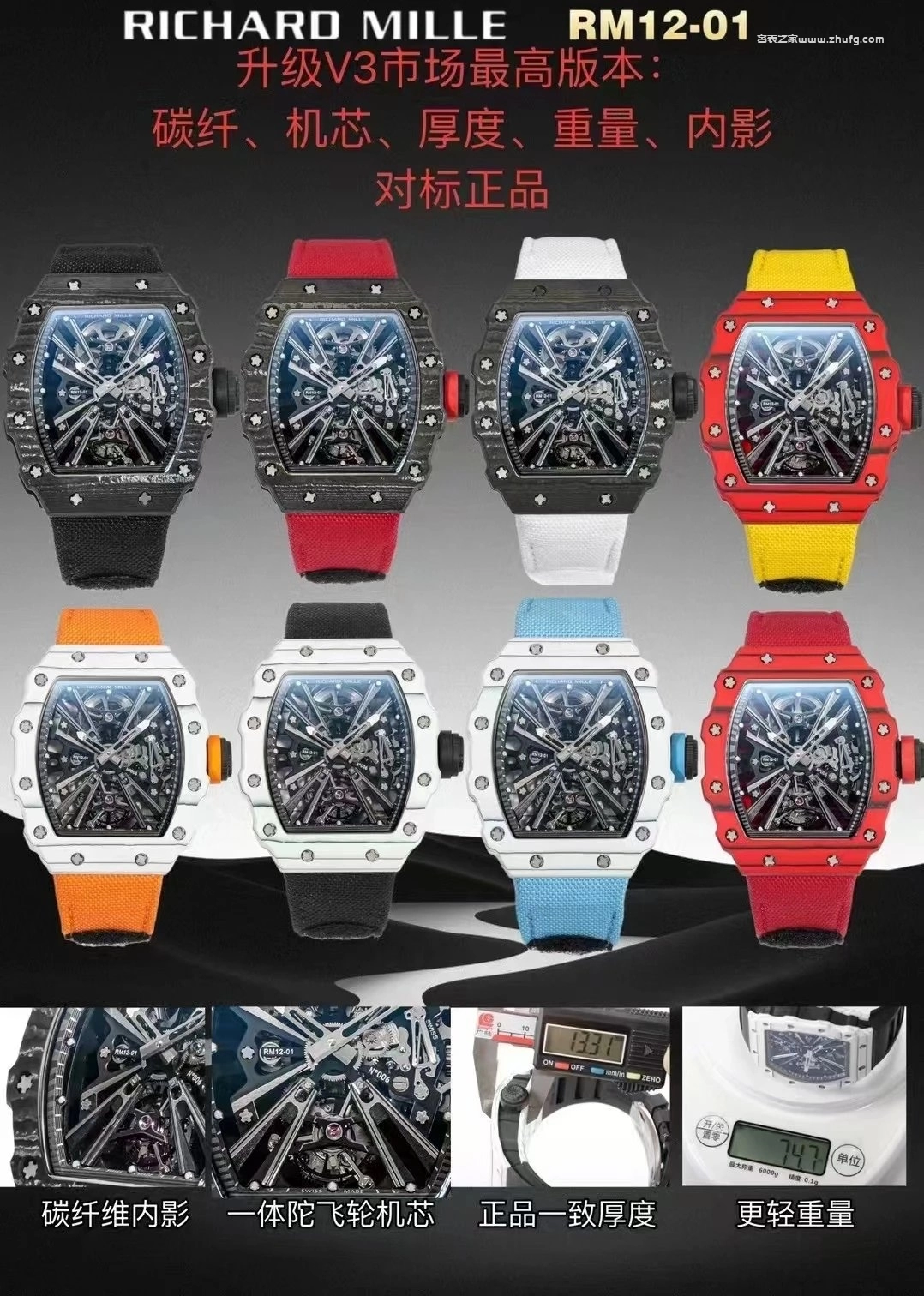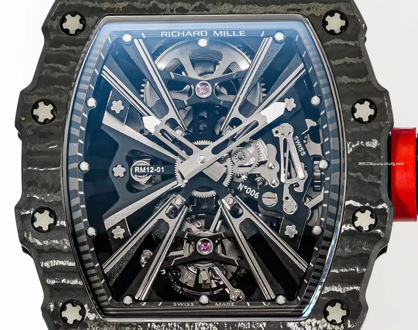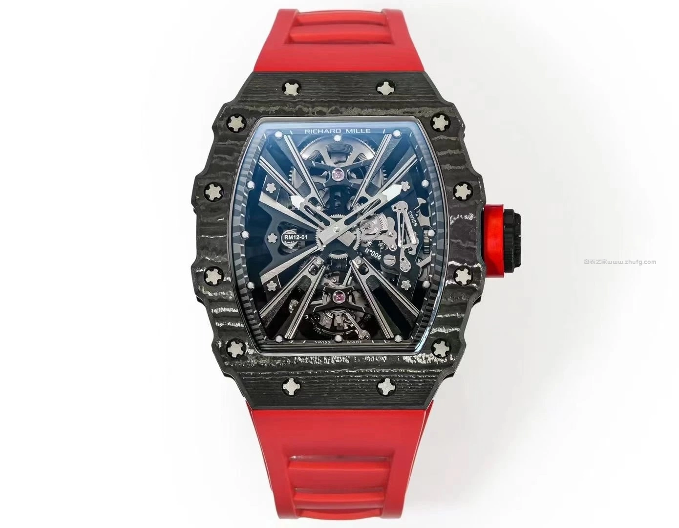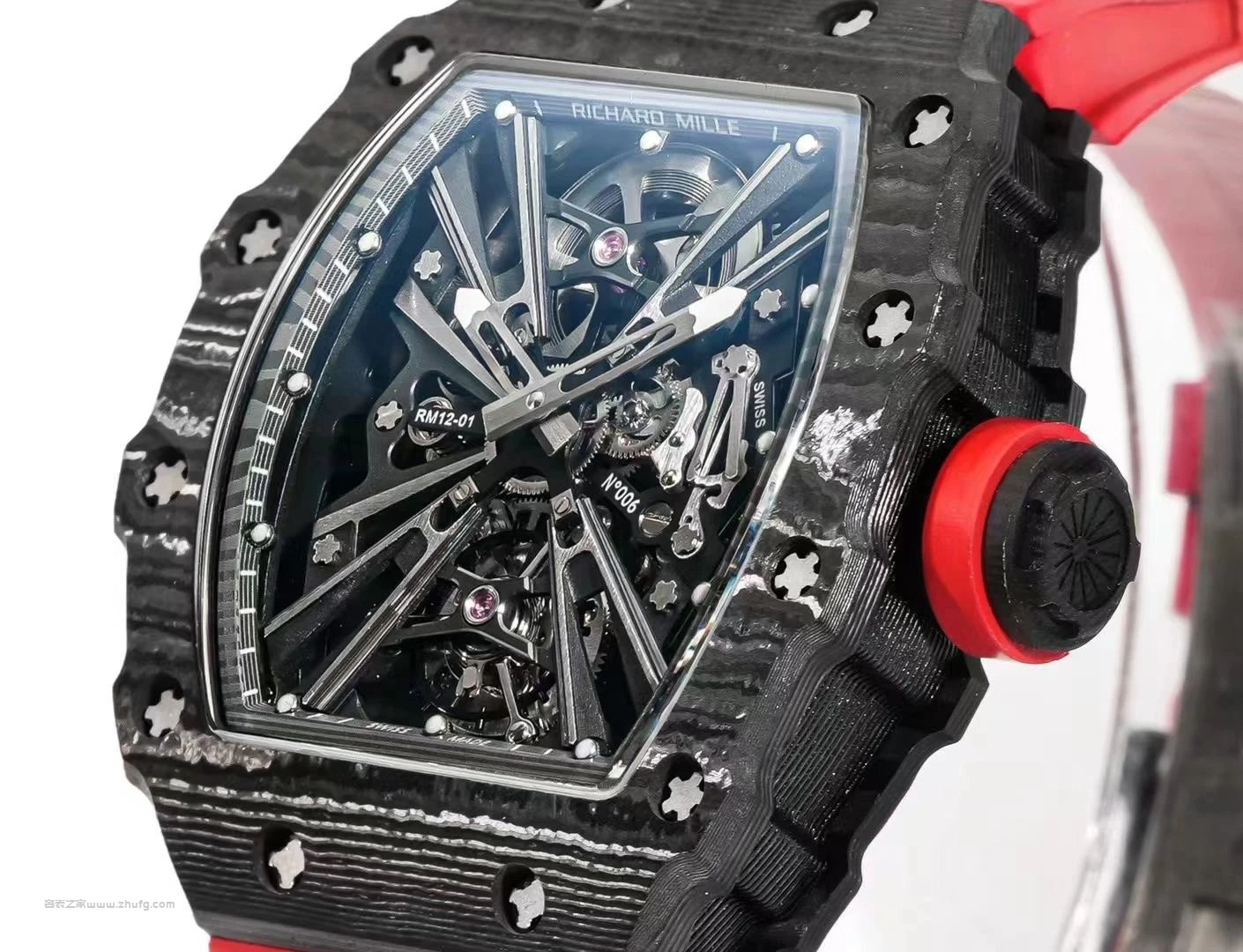 理查德米勒 RM12-01 真陀飛輪 紅碳纖殼 手動機械男錶 42mm