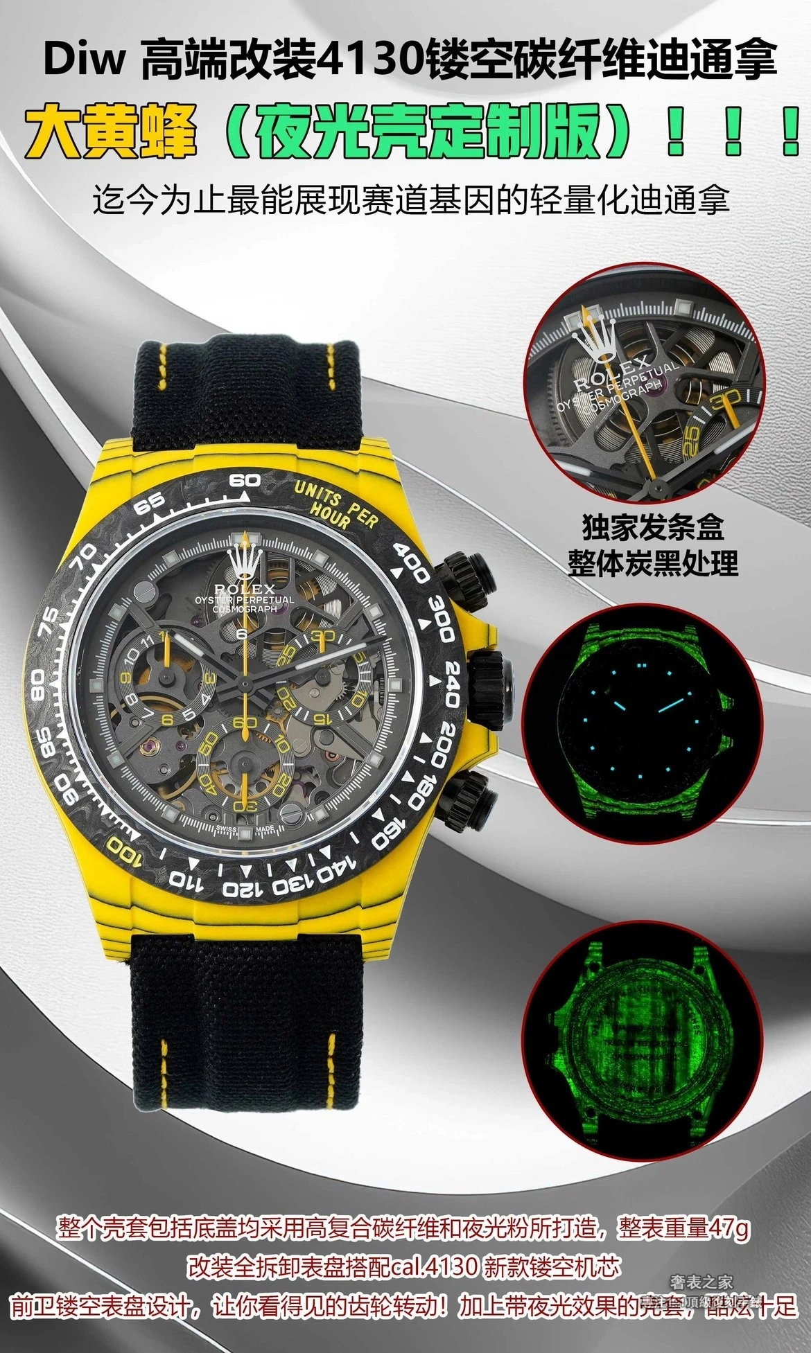 勞力士 迪通拿 鏤空 夜光碳纖維 DIW 4130 高端復刻