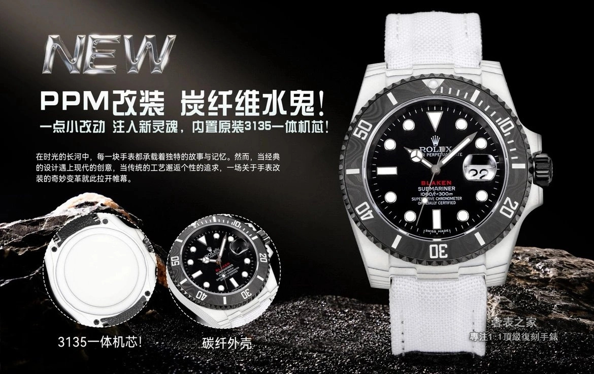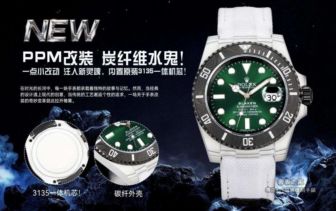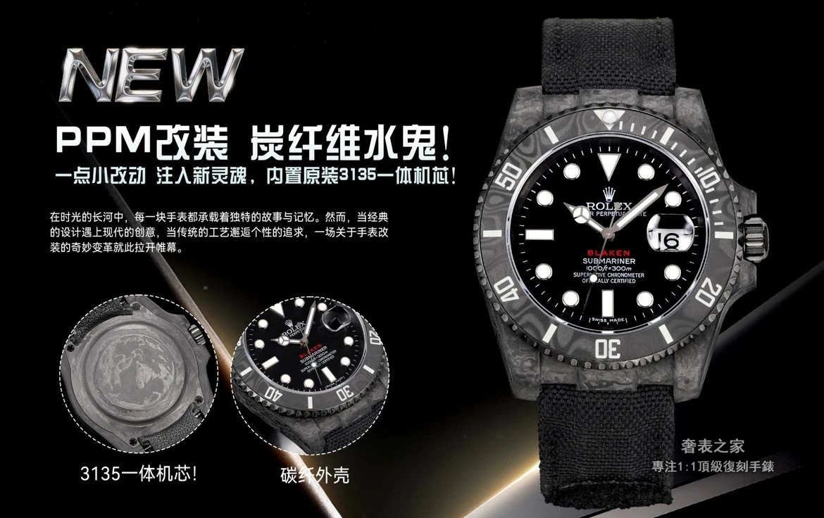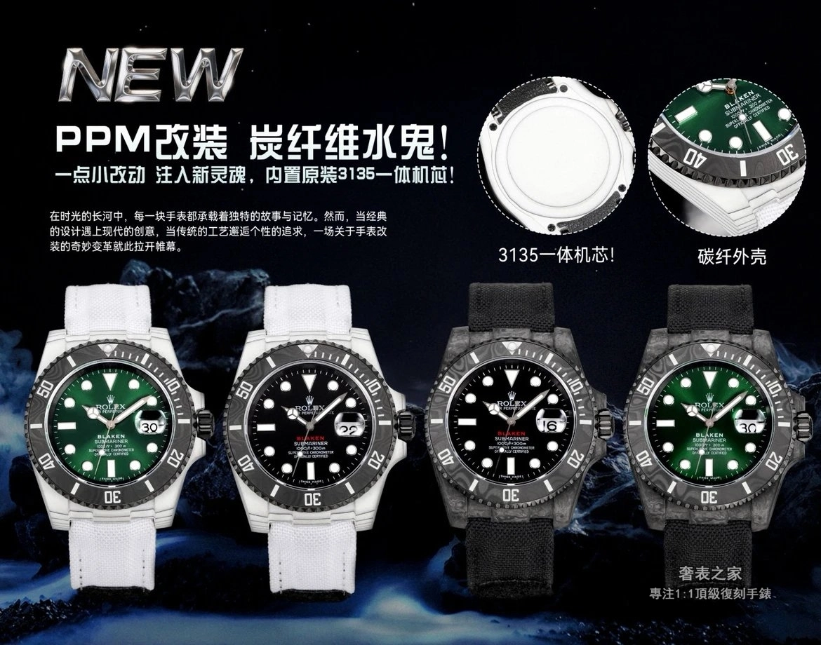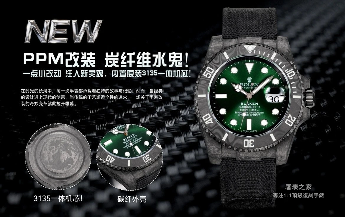 勞力士 Submariner 116610 PPM 改裝 碳纖維水鬼 3135 一體機 高端復刻