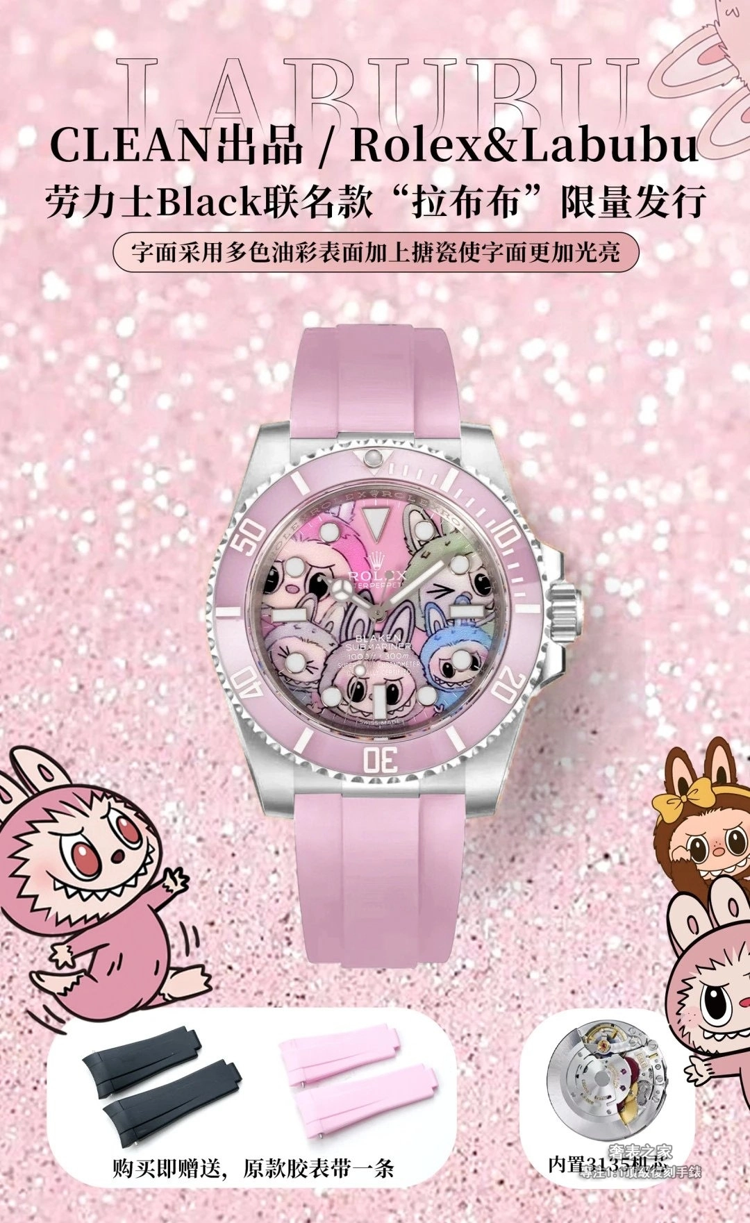 勞力士 Submariner 粉色水鬼 Labubu 聯名 CLEAN 3135 超級復刻