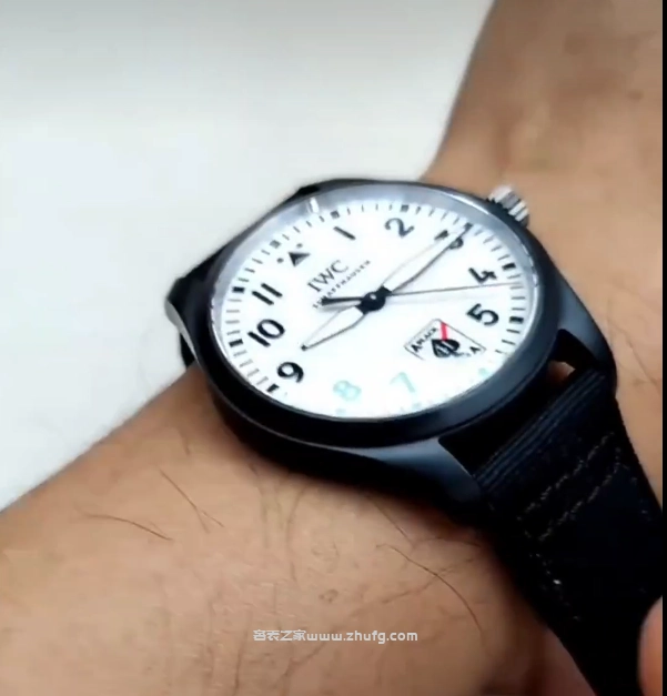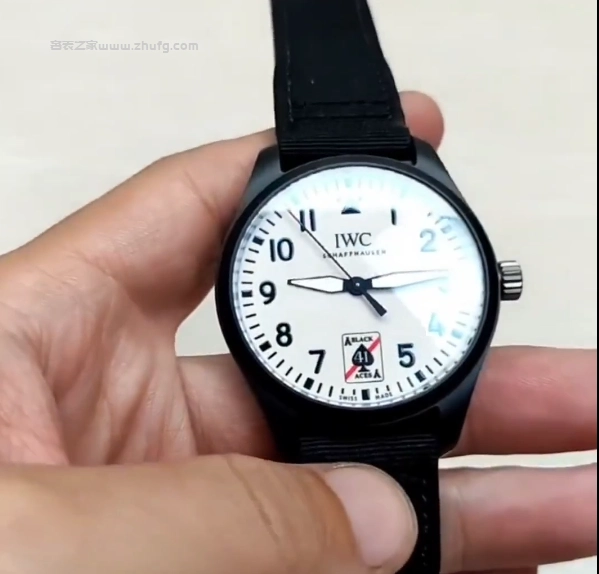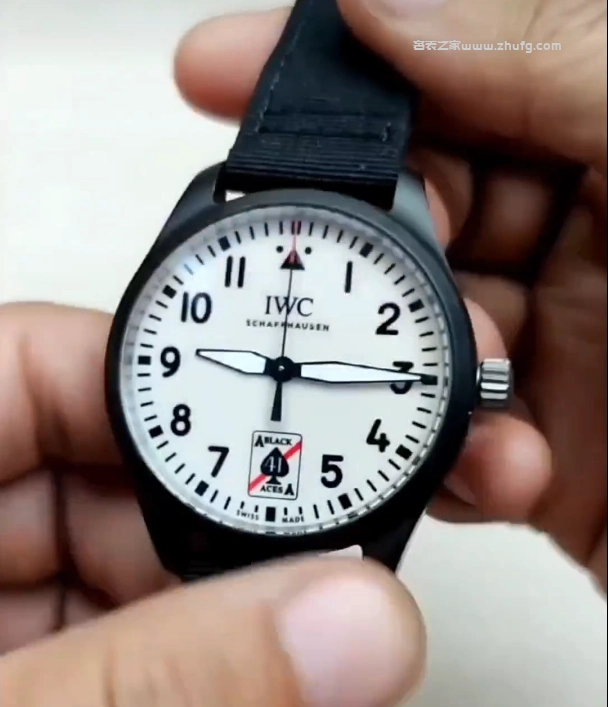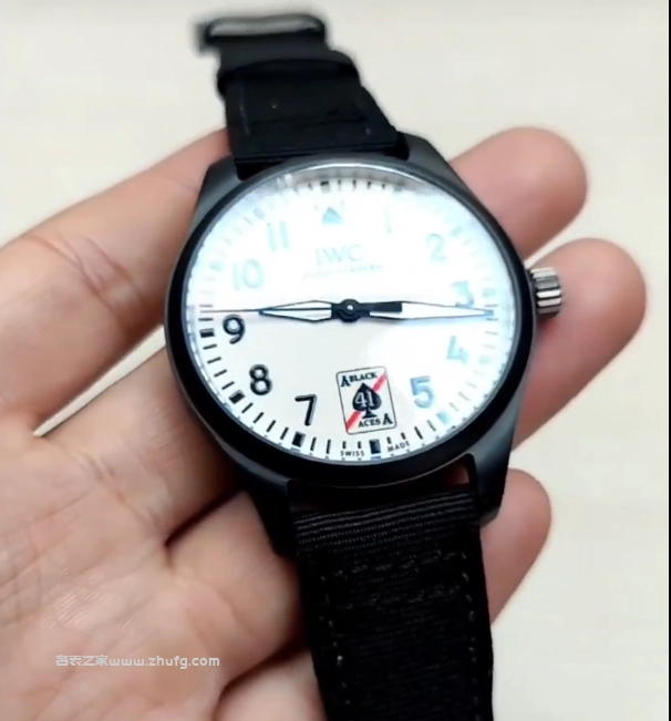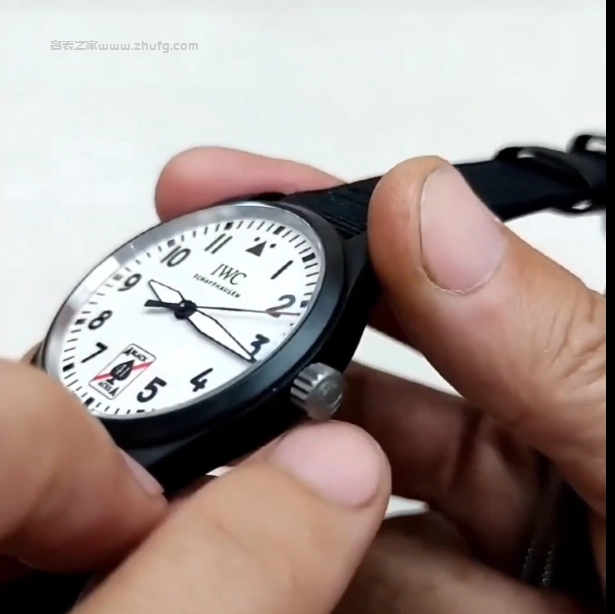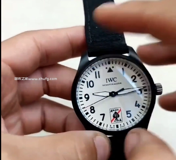 然後表盤就是表殼和這個圈兒陶瓷的,黑色的哑光陶瓷。側面的表冠是鈦的,後蓋也是鈦的,這還有個飛機戰鬥機的標識。它的表帶是這種內部像皮質的感覺,外面是這種纖維的,是布的,表扣也是鈦的,這表帶呢都是帶這種快拆的,按下去,我就能把它這麼快速拿下來這麼一個表帶,然後廠裡還送了這麼一條表帶,也是帶快拆的,這誠意還是可以的。