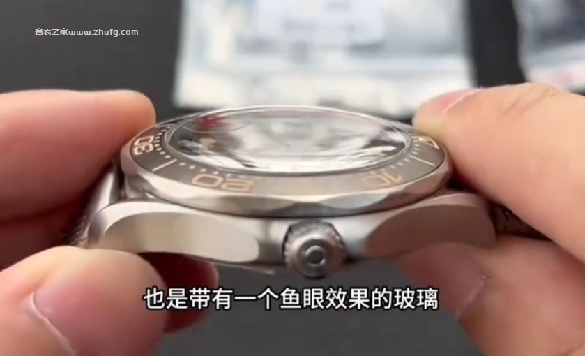 接著看一下它的藍寶石玻璃。玻璃通透度非常高,並且帶有魚眼效果,這一點與原版一致。藍寶石玻璃具備防刮特性,細節相當到位。
