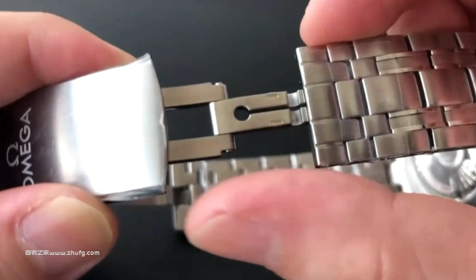 厚薄度控制也非常好。旋入式錶冠這裡有一個排氣閥,不過這個排氣閥其實沒什麼實際用途。鋼帶的整體質感也不錯,寬窄度 OK,依舊帶有微調,且微調範圍非常大。比方說,你不按按鍵的前提下,可以直接打開錶帶,大概能延長 5 公分左右,你再推過去還能延長更多。所以無論你穿多厚的潛水服,這款錶都能輕鬆佩戴,不需要任何工具來調整,這也是潛水錶的設計初衷。